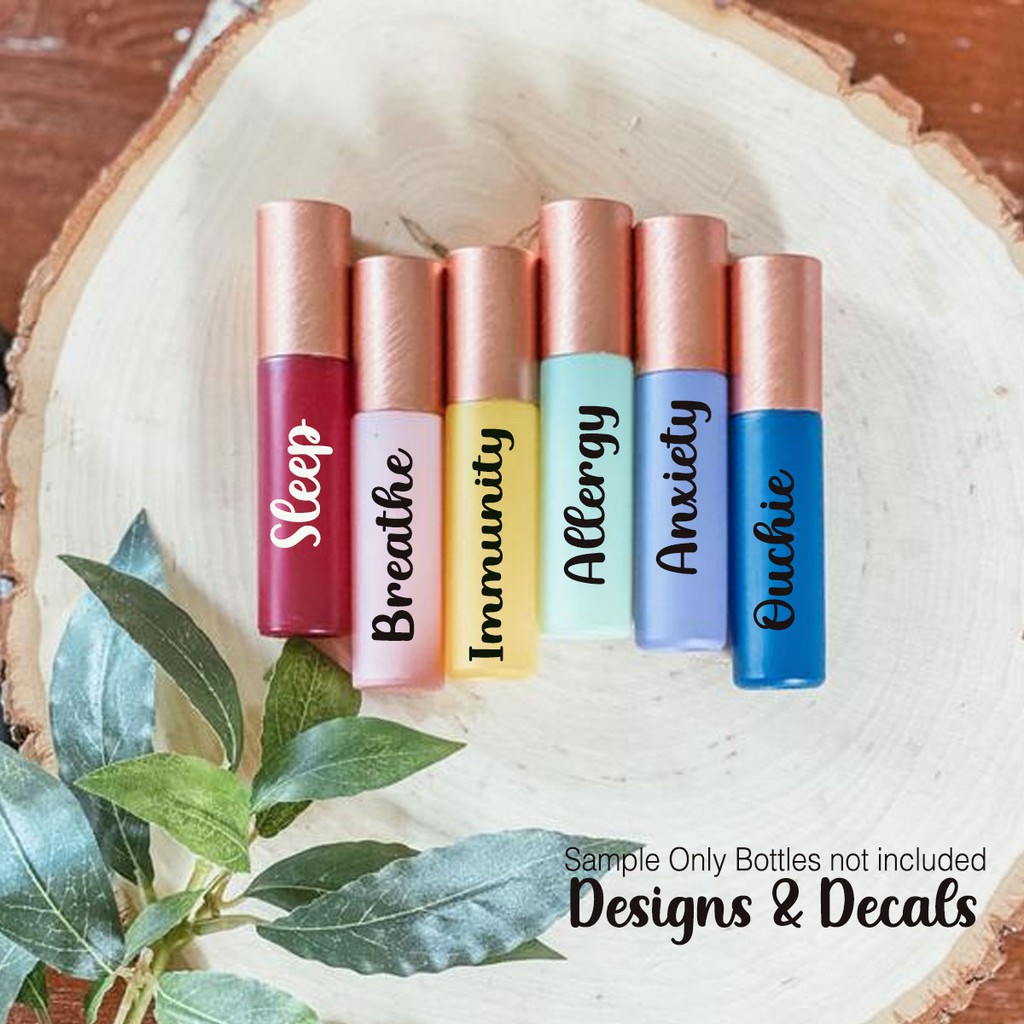 Beautifully designed roller bottle labels that fit all standard bottle sizes.